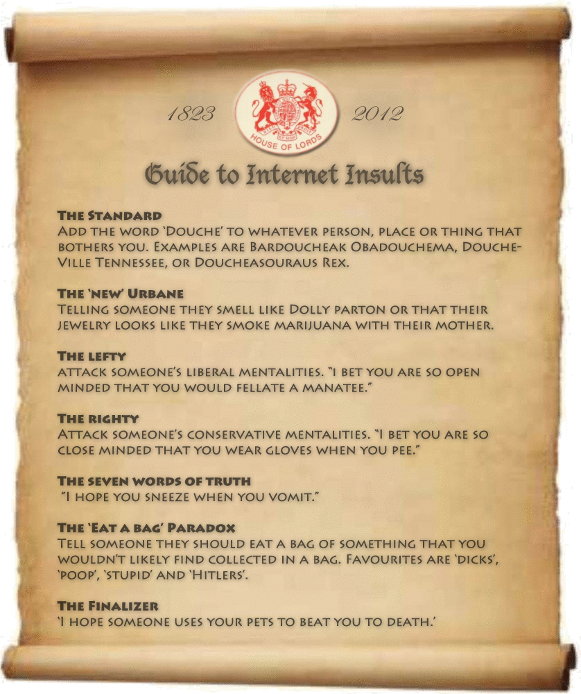 Posted on 27 Apr 201227 Apr 2012 by Trent WilkieGuide to Internet Insults SHARE!TweetShare on Tumblr Click to email a link to a friend (Opens in new window) Email Click to share on Reddit (Opens in new window) Reddit Like Loading...
