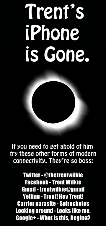 Posted on 16 May 201216 May 2012 by Trent WilkieTrent’s iPhone is Gone SHARE!TweetShare on Tumblr Click to email a link to a friend (Opens in new window) Email Click to share on Reddit (Opens in new window) Reddit Like Loading...